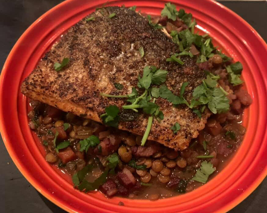 Add all the remaining ingredients for the lentils, bring to the boil then simmer for 30 minutes,