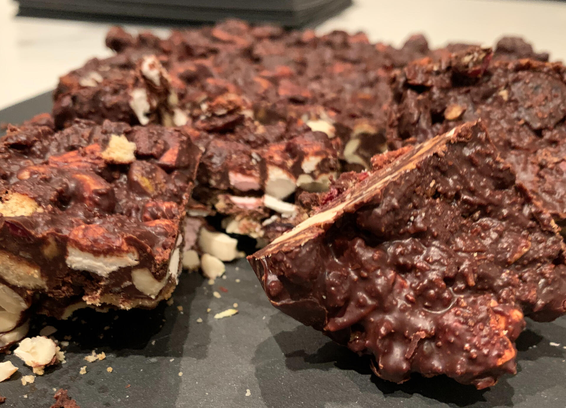 Finally lightly stir in the chocolate, pistachios and cranberries until they are evenly distributed.