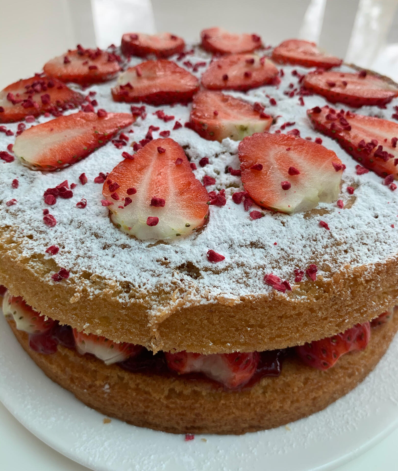 Leave to cool in the tin for 5 minutes, then loosen the edges with a knife, remove from the tin and place on a wire rack to cool completely.