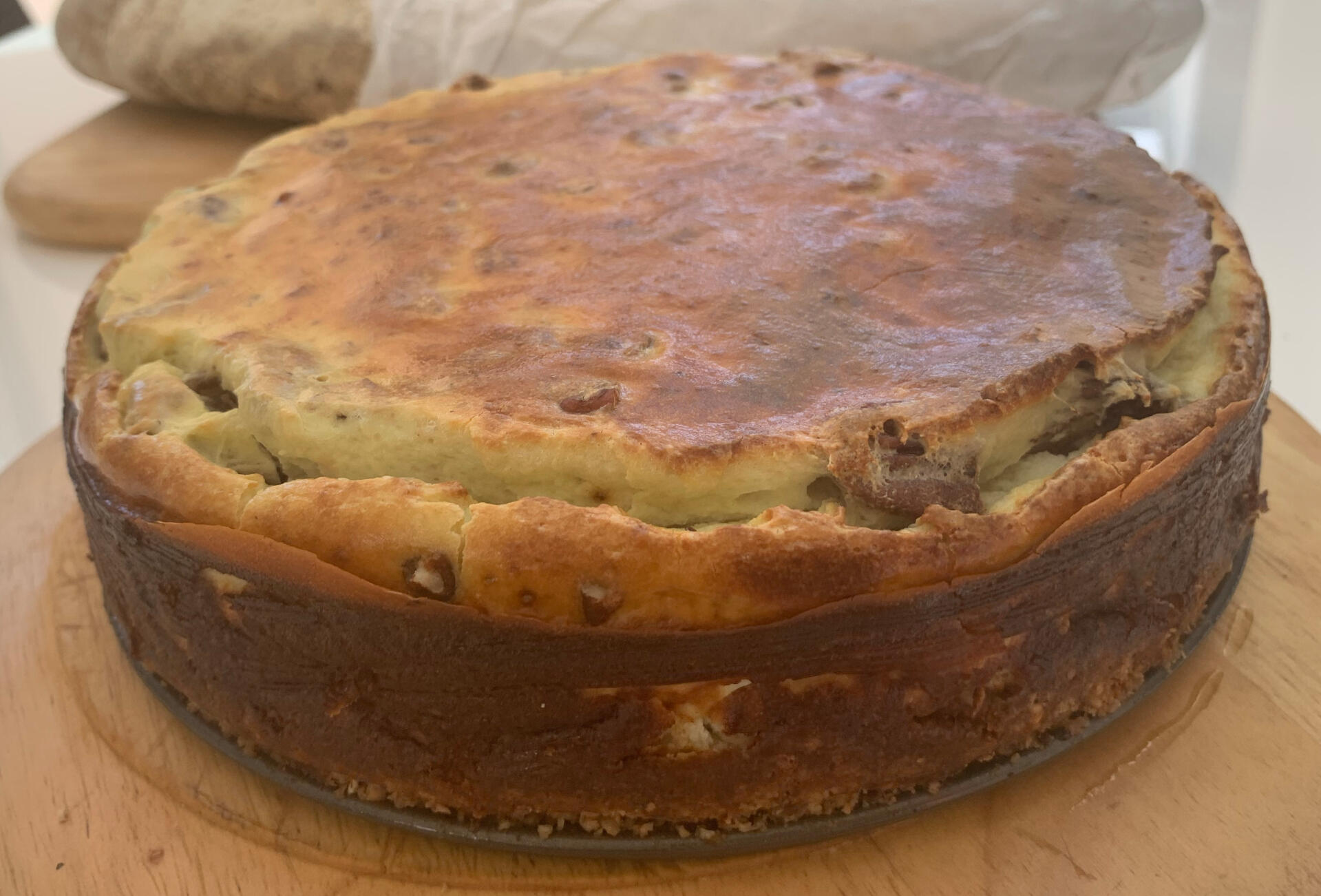 Spoon the cheese mixture on top of the base then bake in the oven for 1 hour.