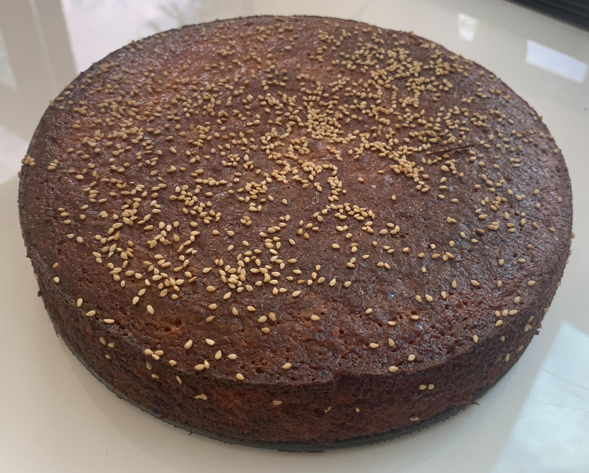 Remove from the oven Sprinkle with the sesame seeds and leave to cool on a rack still in the tin.